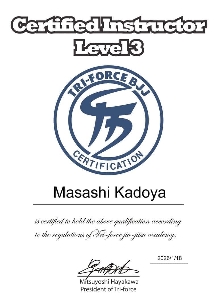 門屋(トライフォース高知代表)が認可インストラクターレベル3に昇格|トライフォース高知